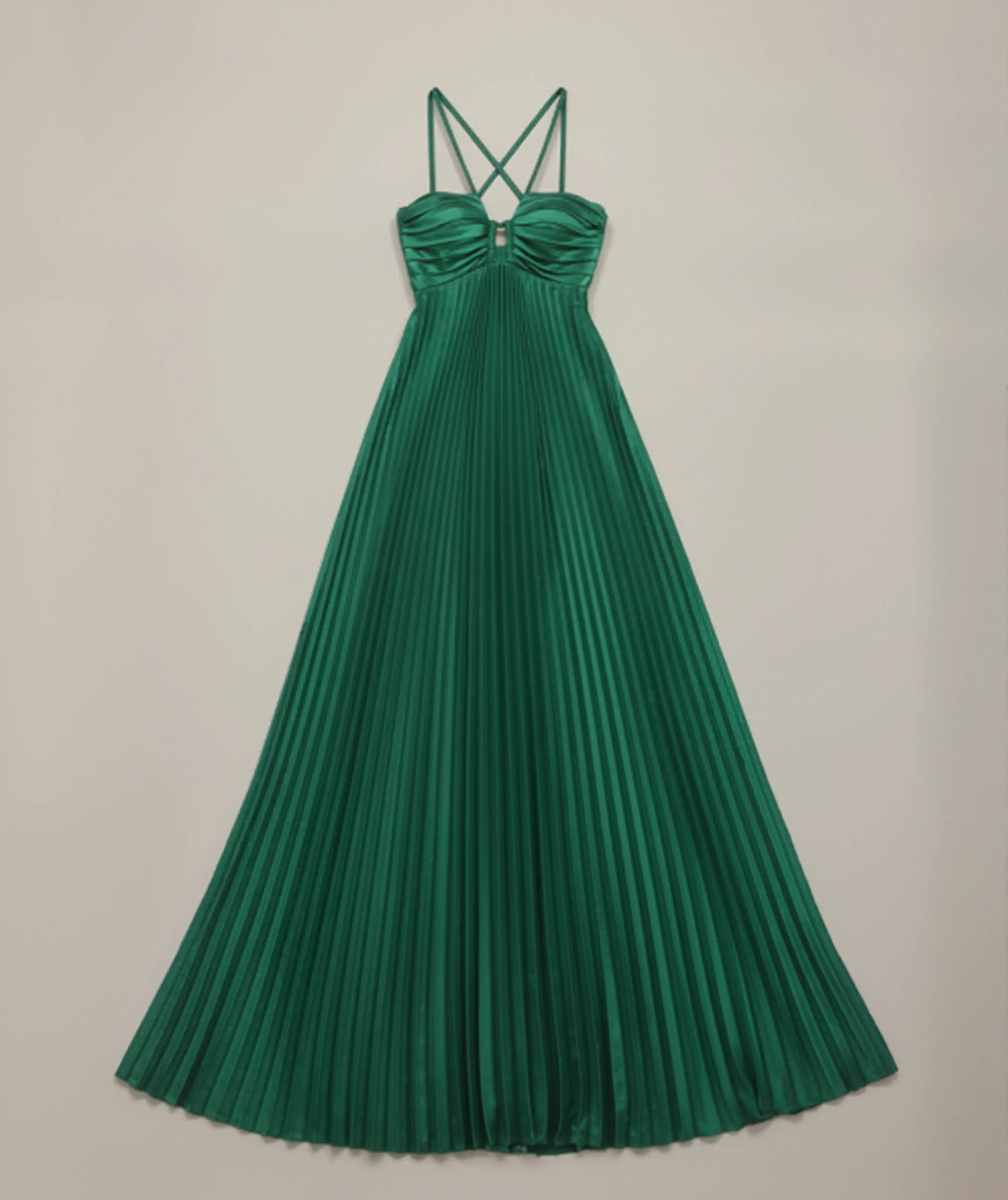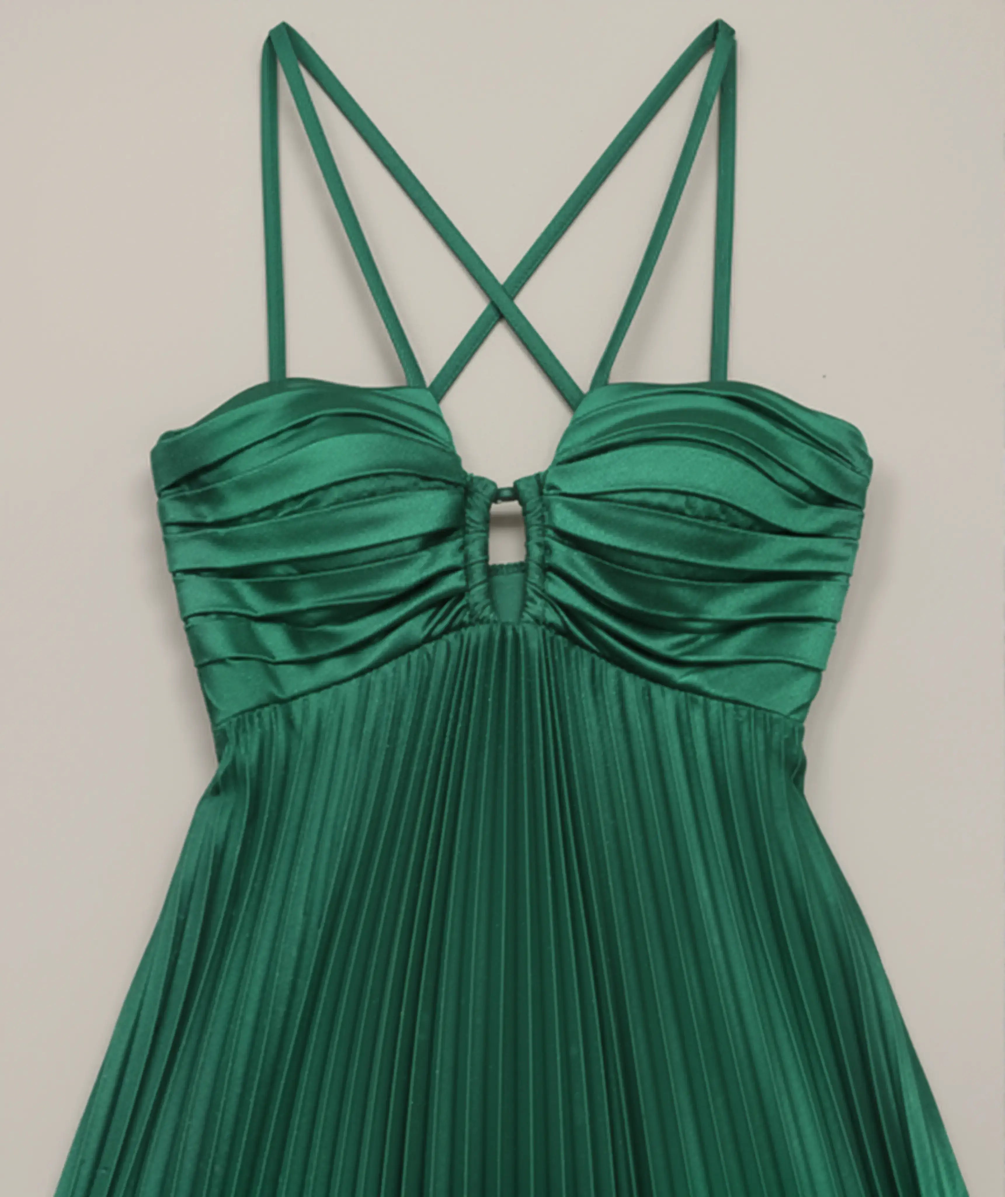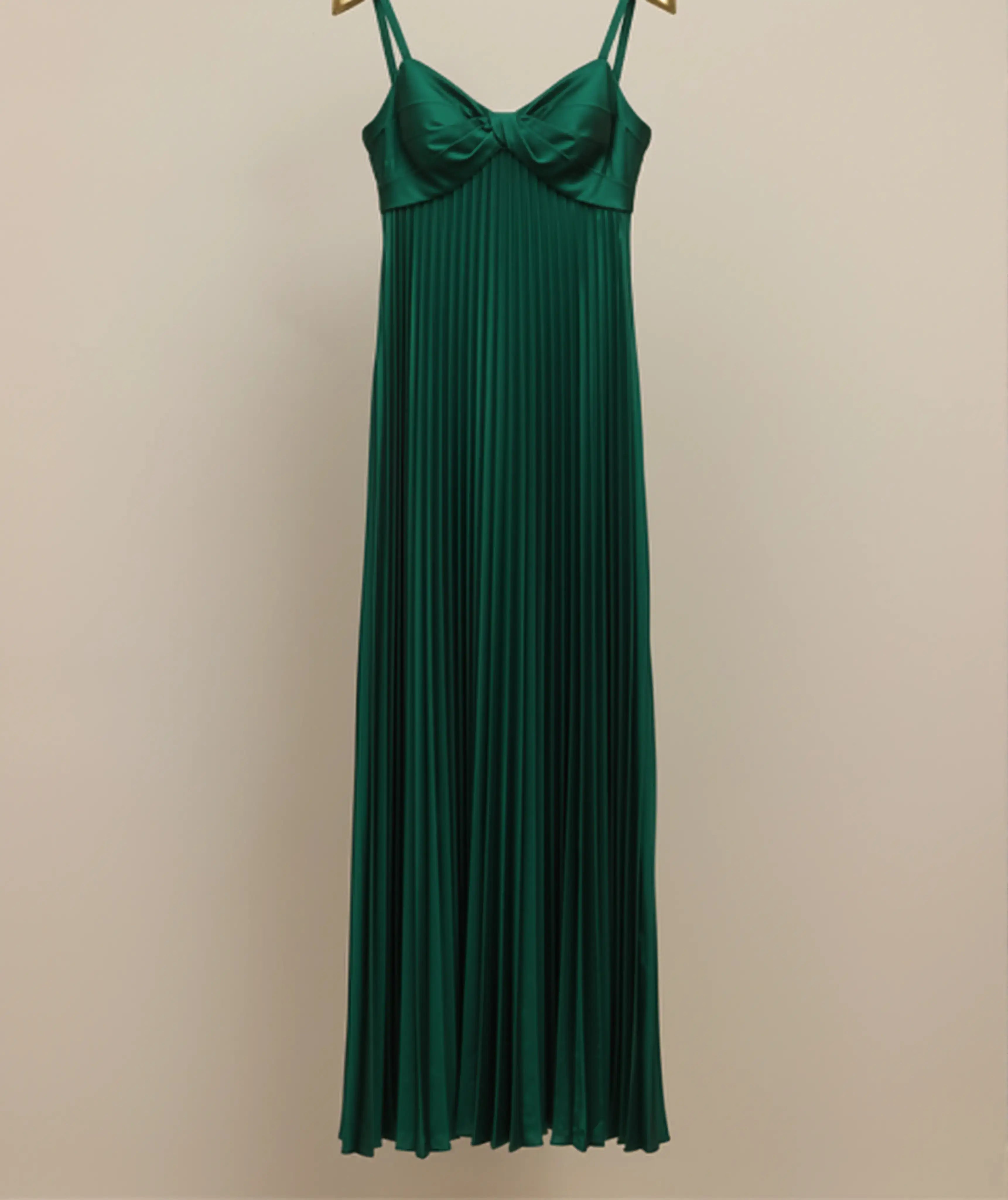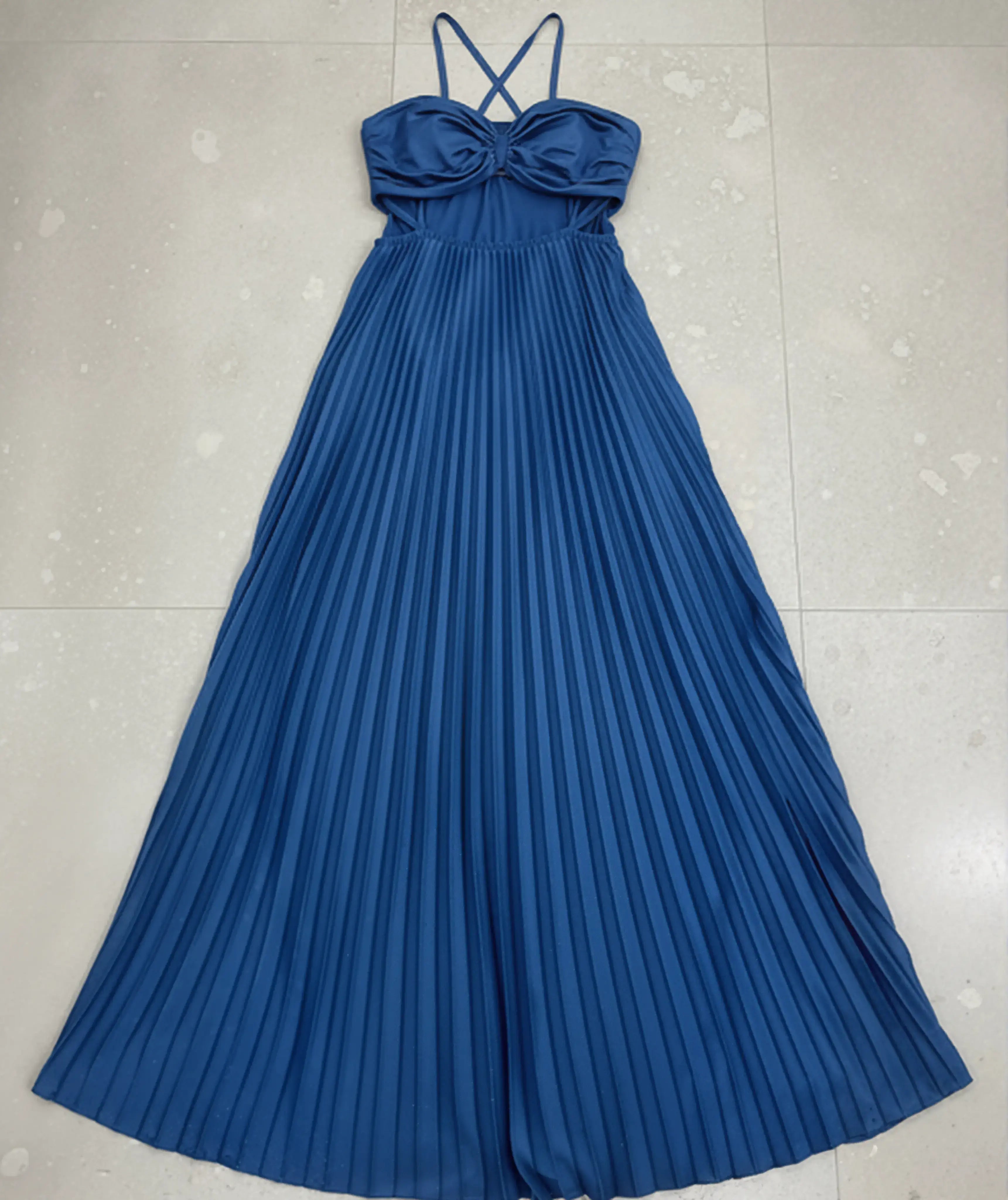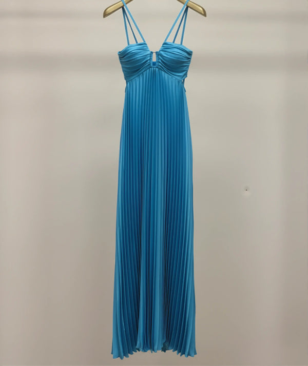 The Chelsea Dress embodies effortless elegance with its high-waist pleated design and halter neckline.